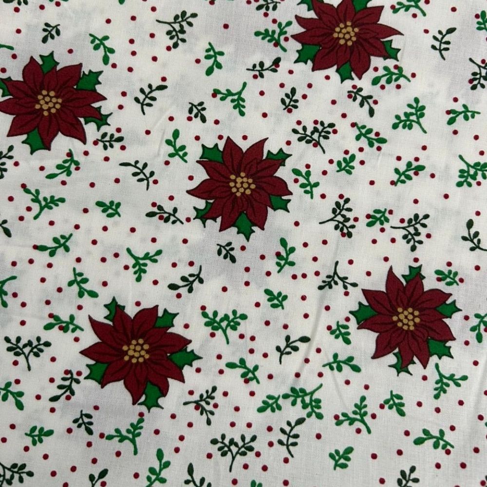 WHITE AND RED FLOWER POINSETTIA COTTON FABRIC – CHRISTMAS RANGE